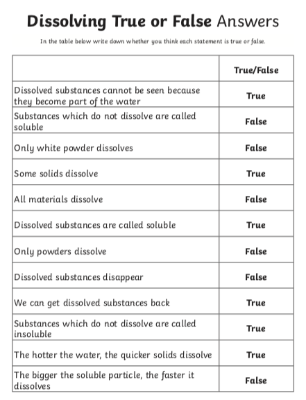 Task 1 alternative: If you are unable to do any practical work please research dissolving to find out if these statements are true or false. Please send your work in to me in the science channel of Teams.